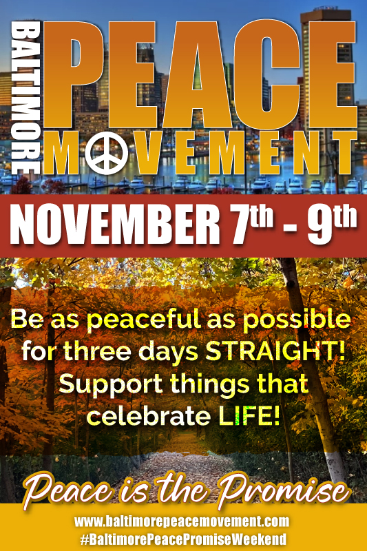Baltimore Peace Promise weekends are about honoring the fact that peace is in all of us, which means peace is promised to all of us. These weekends ask that we all do our best to be peaceful and celebrate life, and that we're all focused on our peace and joy together!